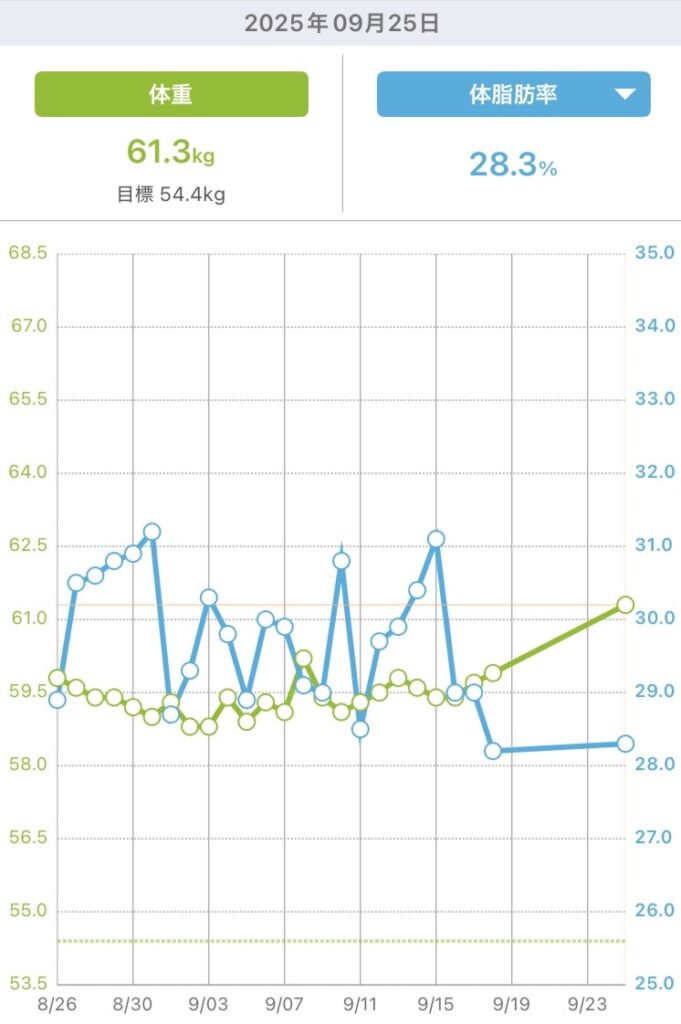 昨日怖くて体重計乗れなかったが、いつまでも逃げてるわけにはいかないので今日の体重↓