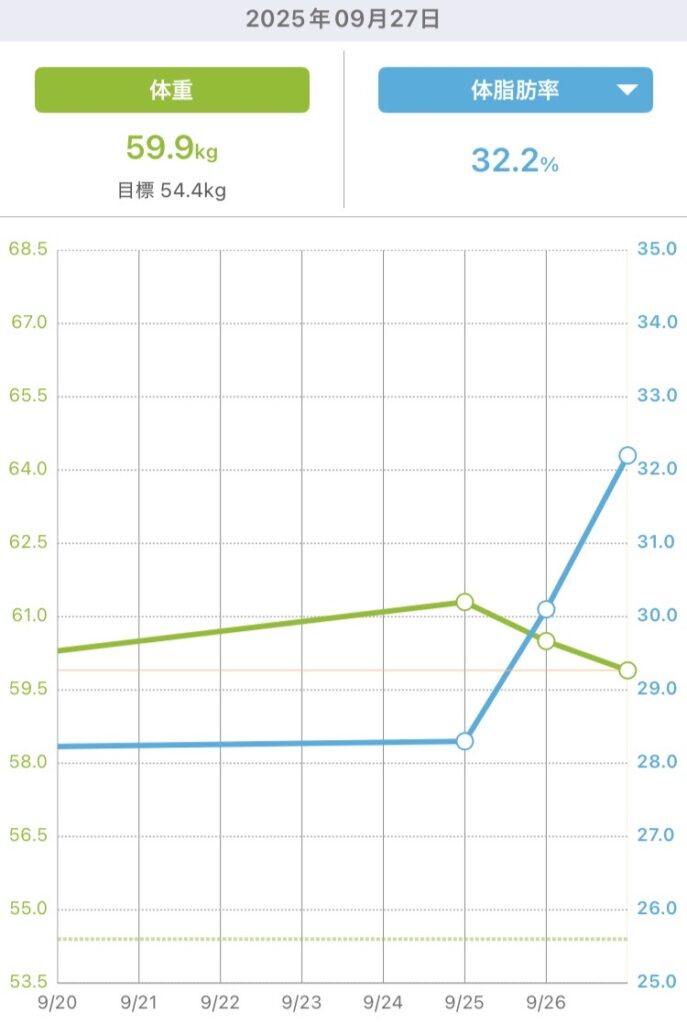 とりあえず60キロ切るまでに戻れて一安心。
