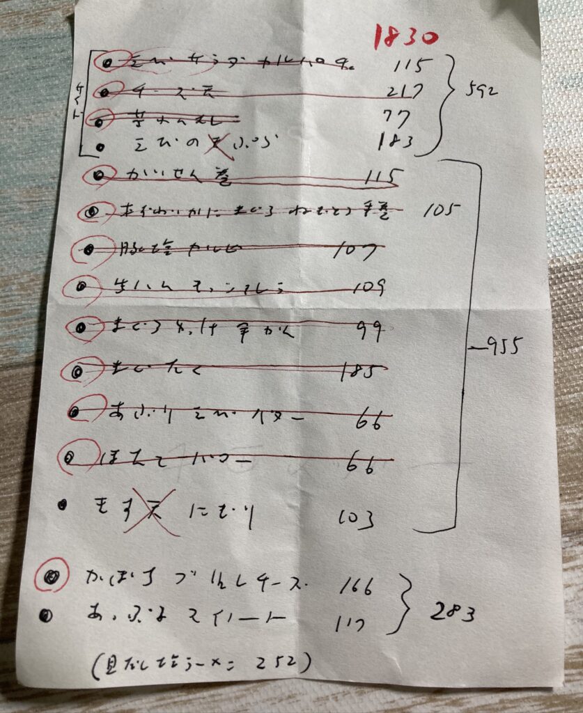 いつもつられて食べ過ぎてしまうので、今回は食べたい物のカロリー計算を事前にして、予め予定表を作っておいた。