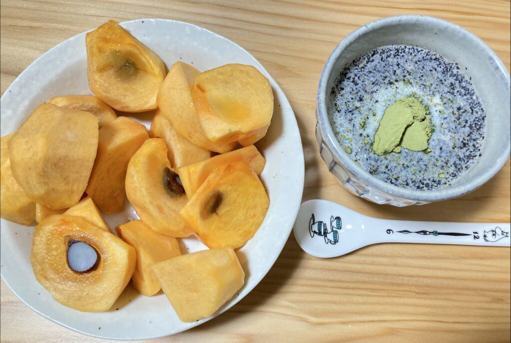 夜も別に食べなくてもいいかなと思ったが、柿が食べたくなったので食べた。