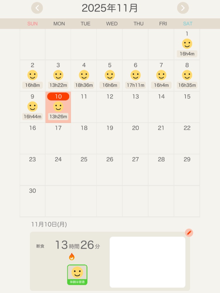 昨日食べた時間が遅かったので今日は未達成。