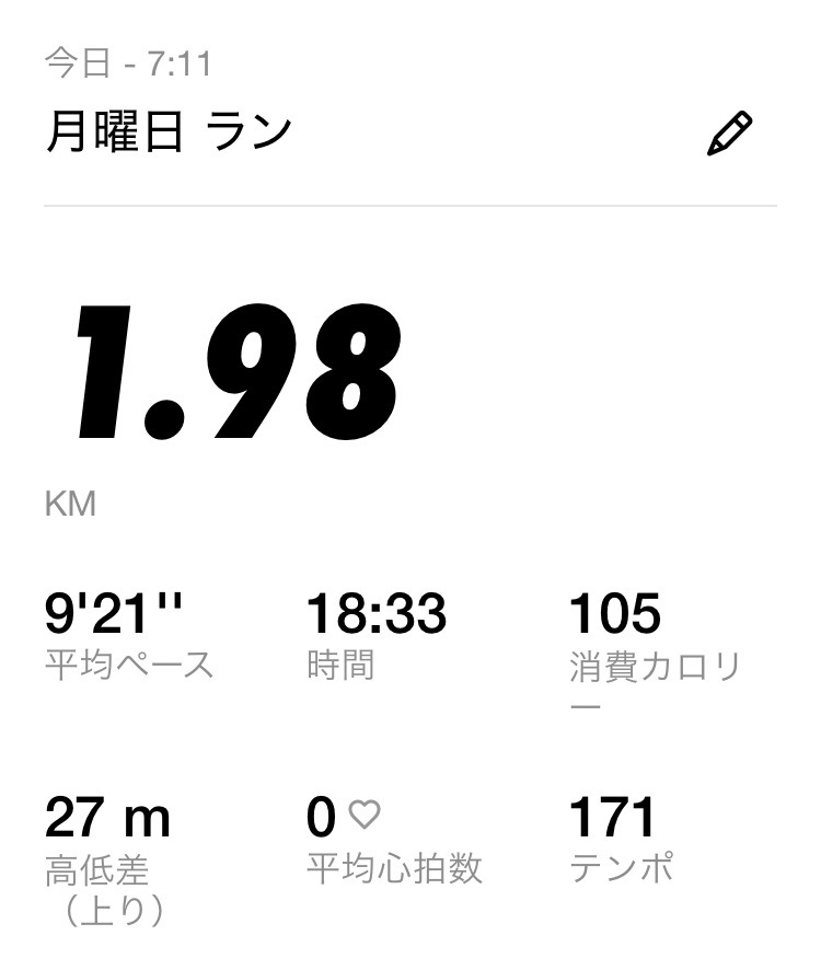 朝ジョギング1.98キロ。