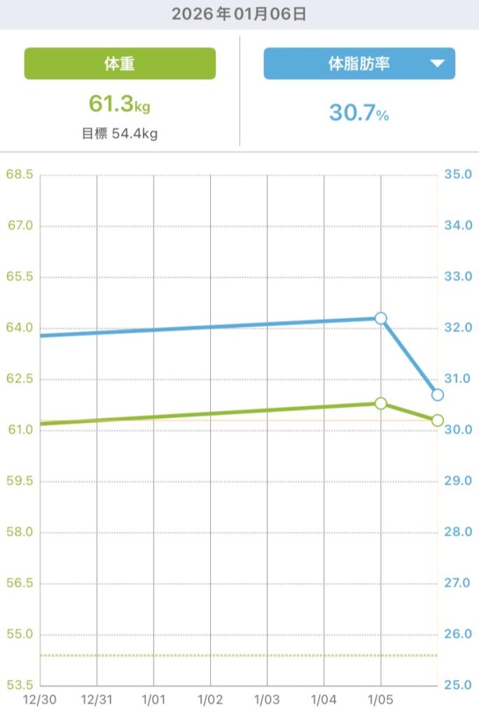目標体重まであと-6.9キロ。